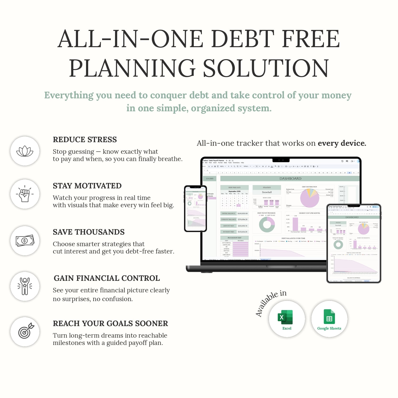 The Aureline Debt Payoff Planner lays out your balances, due dates, and interest in one place — helping you plan payments more effectively and understand how your payoff is improving over time.